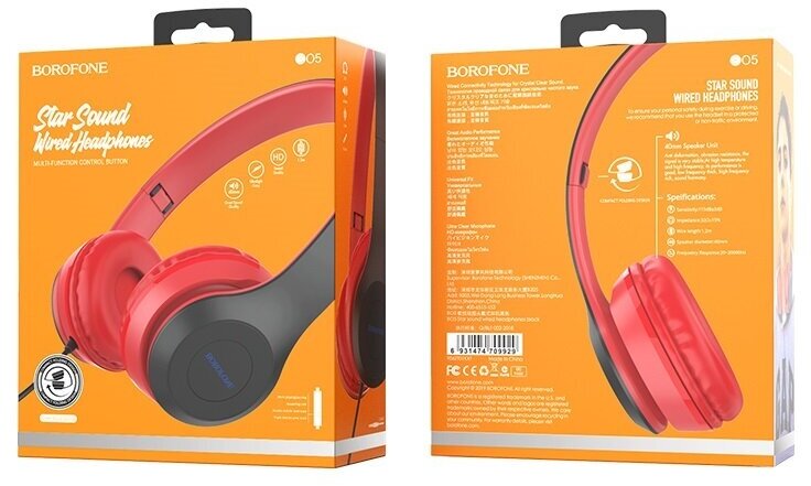 Наушники Borofone BO5 Star Sound Wired Headphones RED