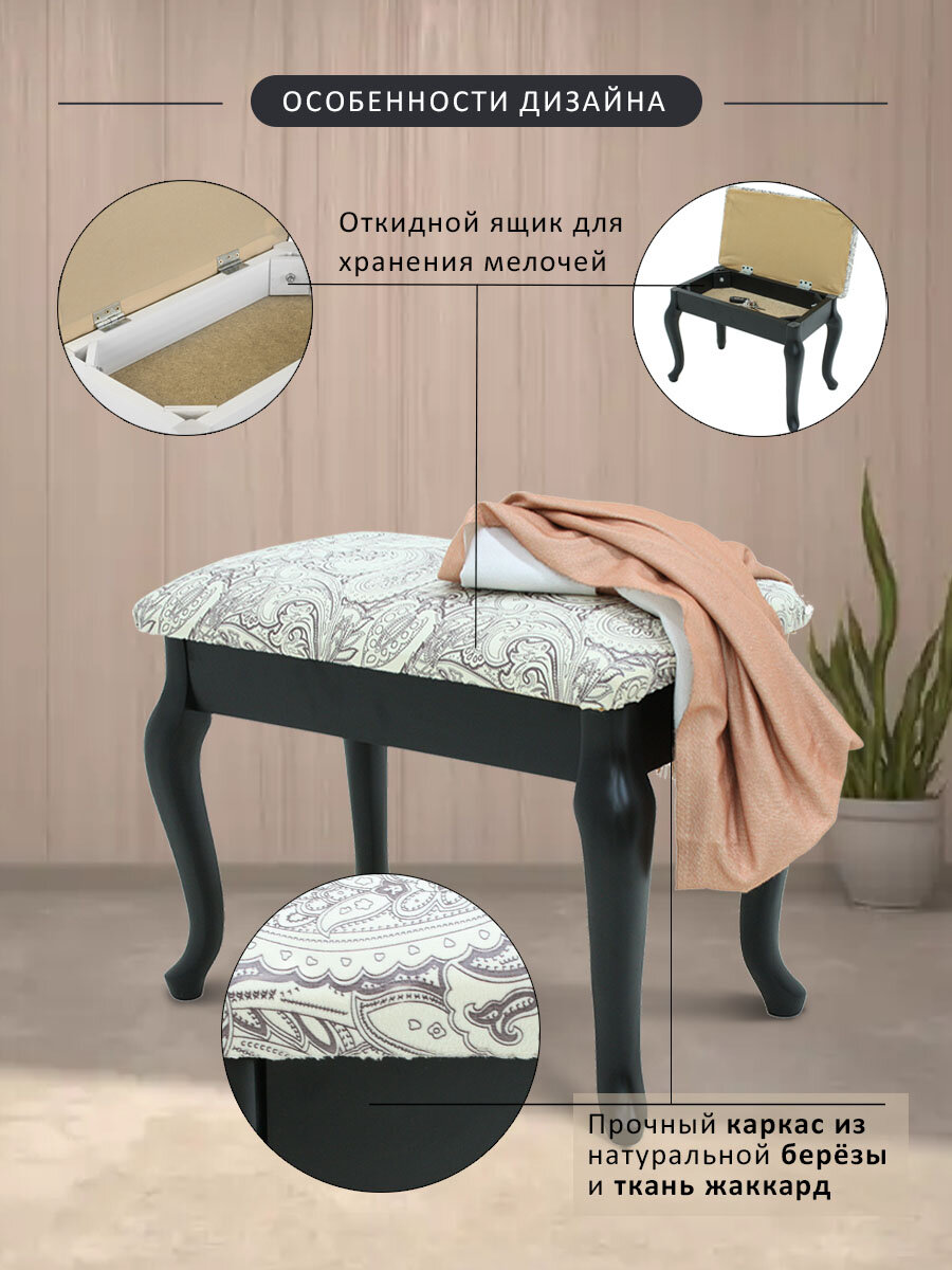 Банкетка DECORTA "Pititi", для прихожей, с ящиком, мебельный гобелен, 62х34х45 см