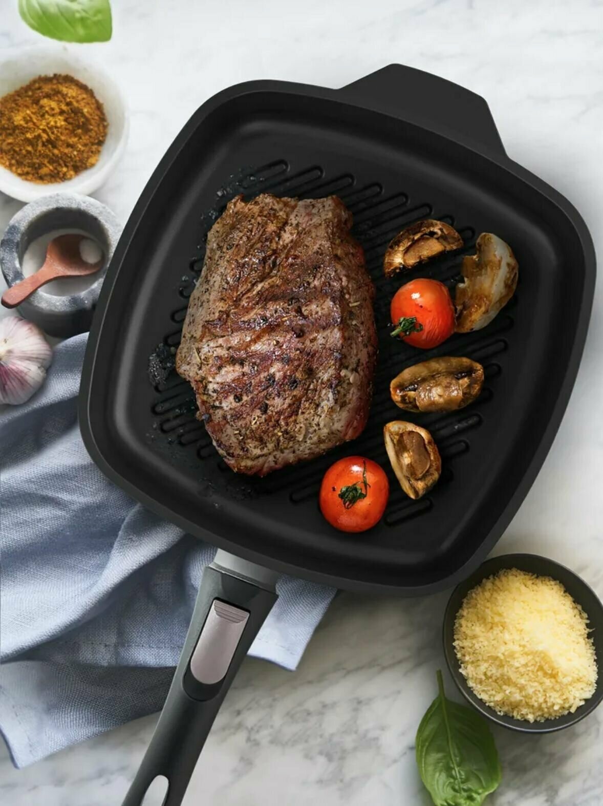 | Плюсы: | высокие рёбра гриля, высокие борта, толстое дно |