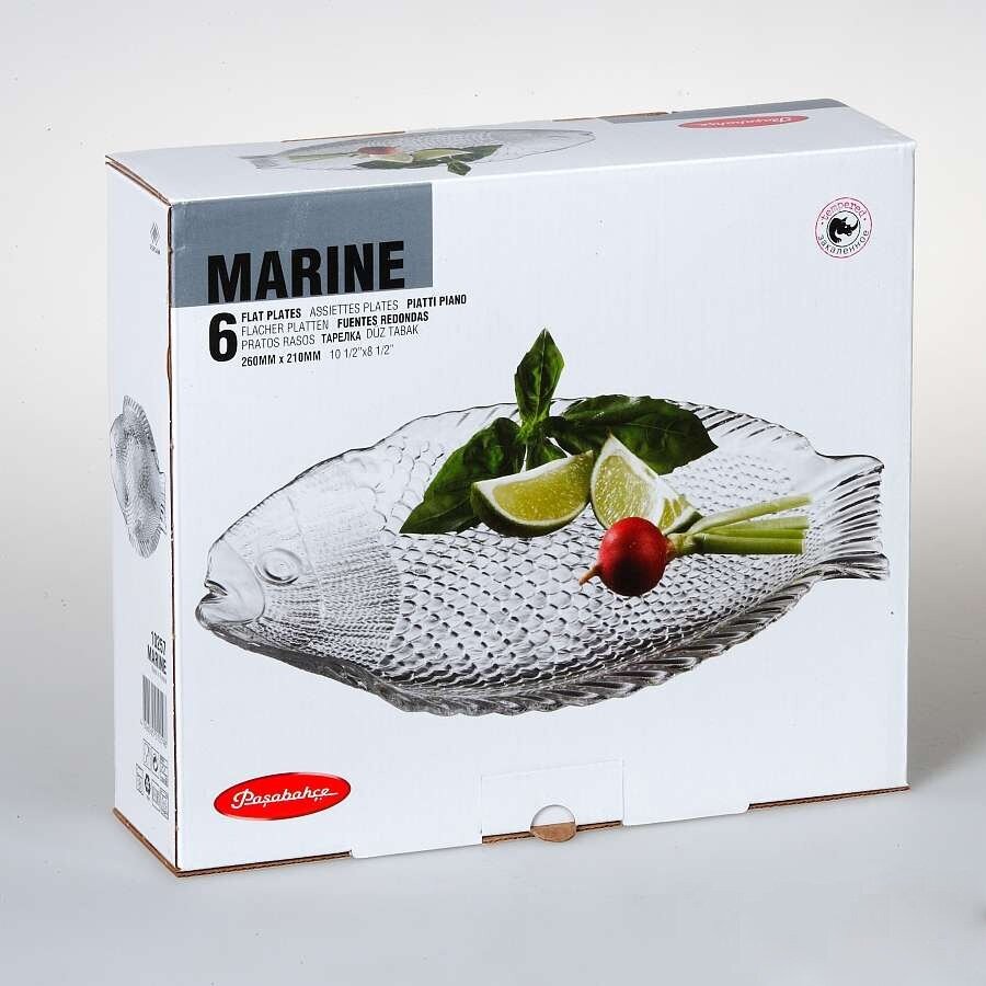 Набор тарелок Pasabahce Marine"(рыба) 6шт, (260мм*210мм) .