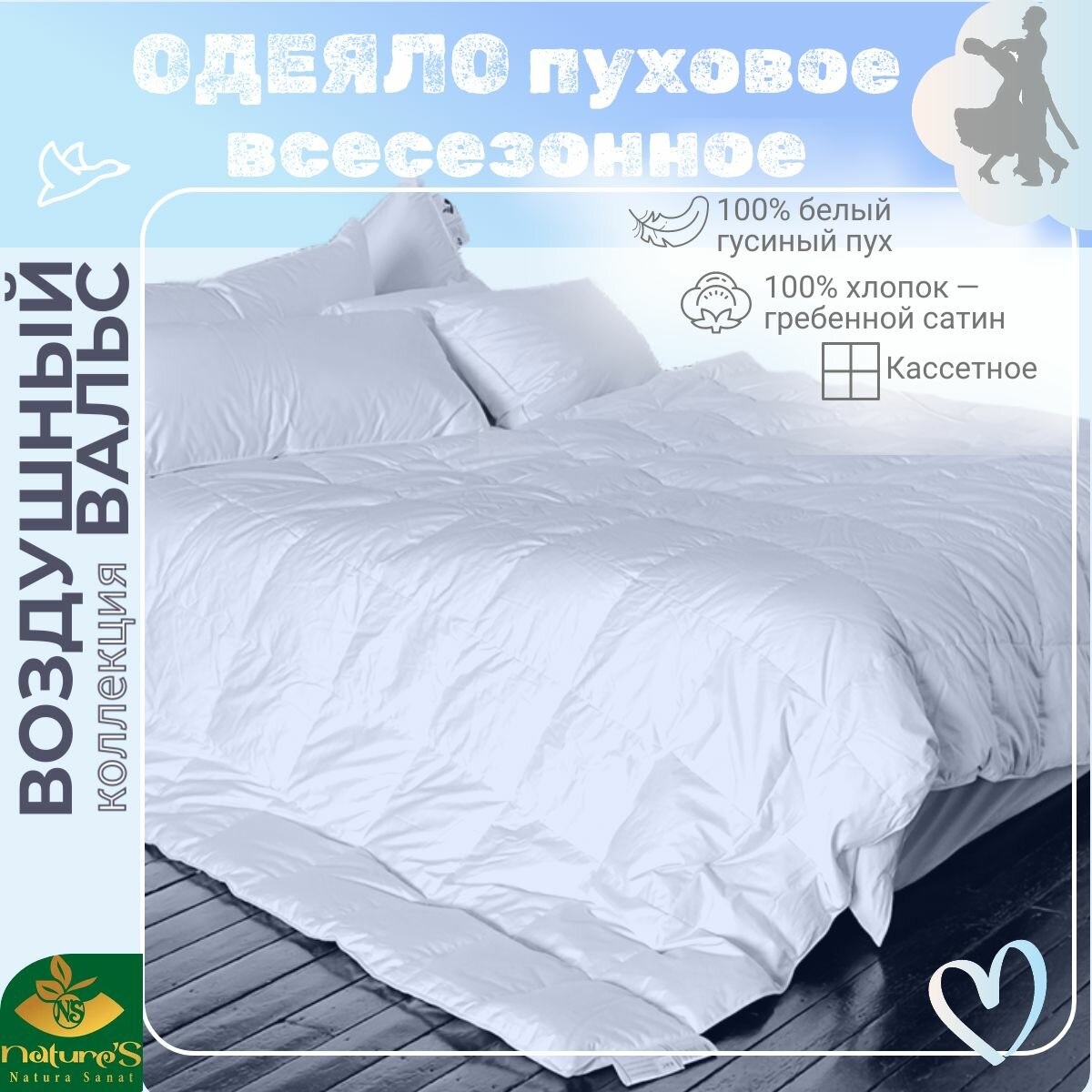 Одеяло Natures всесезонное, из элитного гусиного пуха, кассетное "Воздушный вальс" 200х200