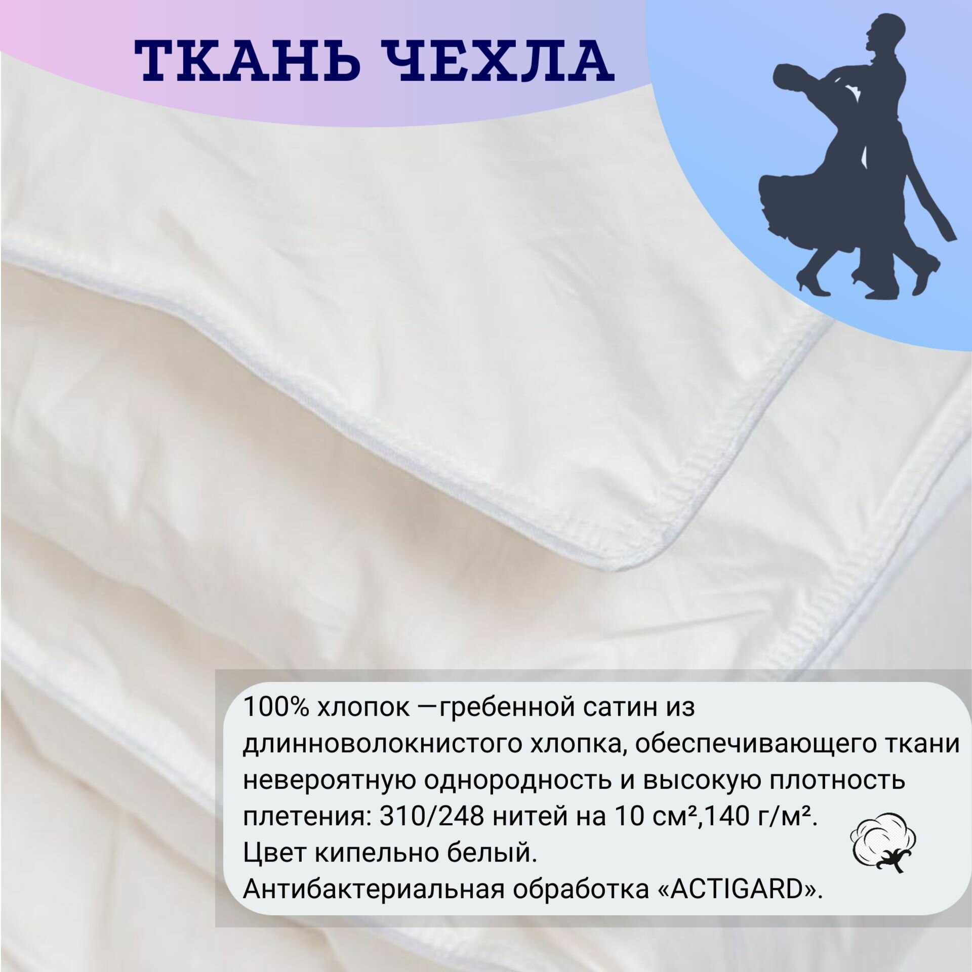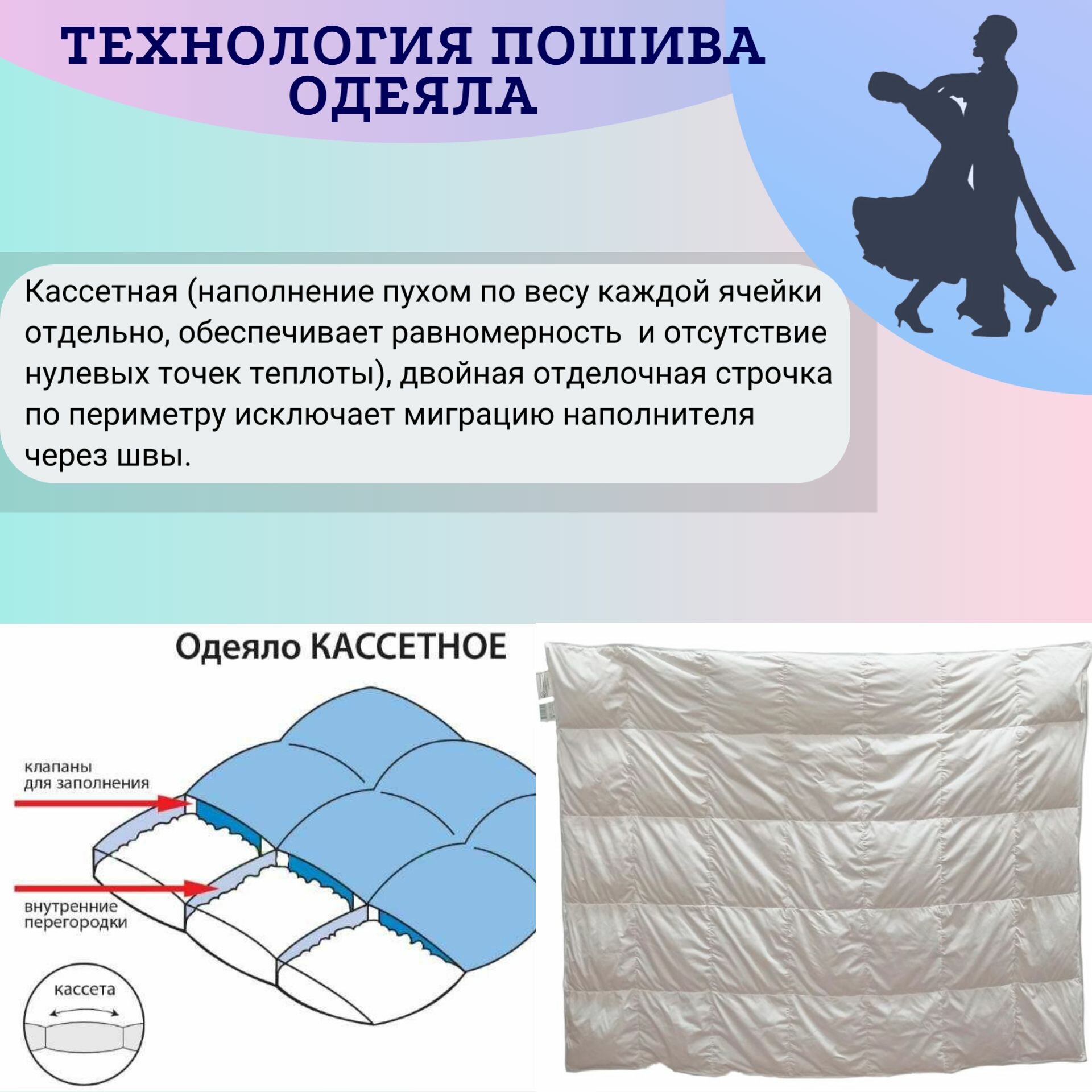 Одеяло 2-х спальное 200х200 Воздушный Вальс, Теплое, Кассетное, Наполнитель 100% Белый Гусиный Пух, Чехол Сатин белоснежного цвета, Премиум качество