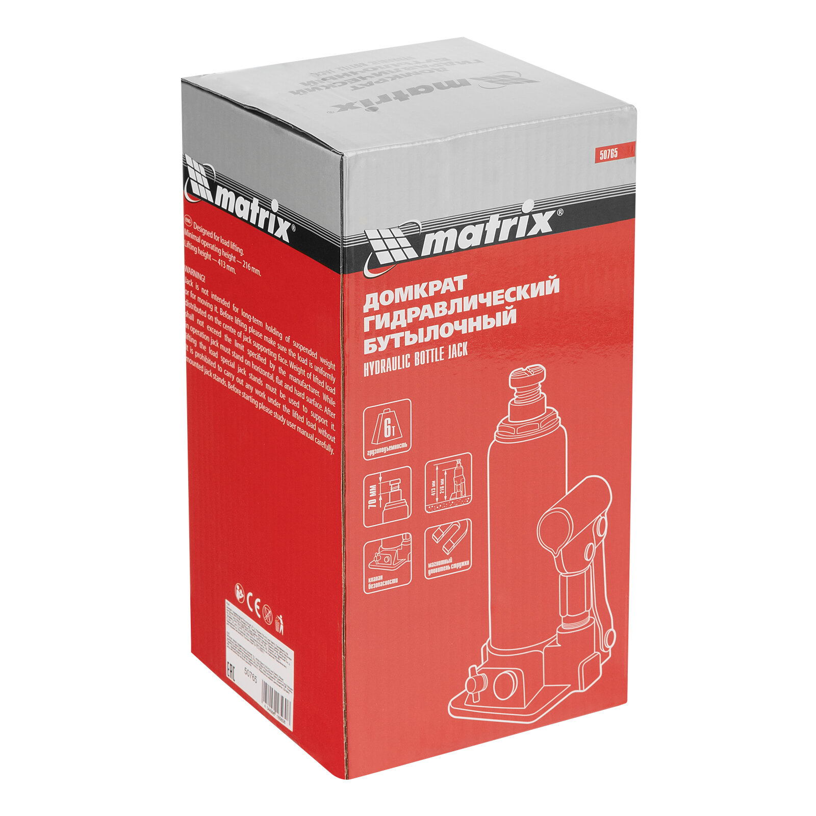 Домкрат гидравлический Matrix 50765, бутылочный, 6 т, высота подъема 216-413 мм .