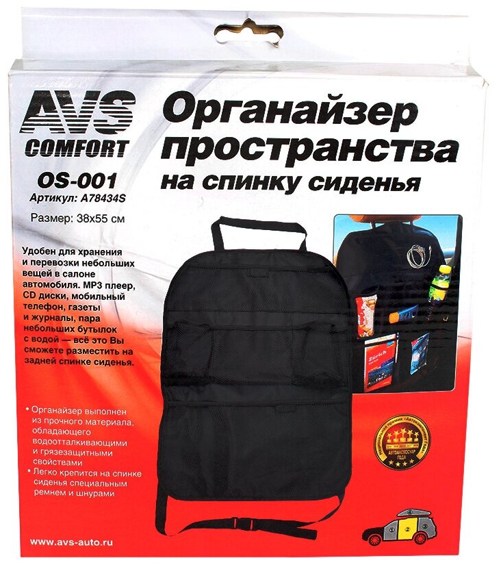 Органайзер на спинку сиденья (38х55 см) "AVS" черный интересное: