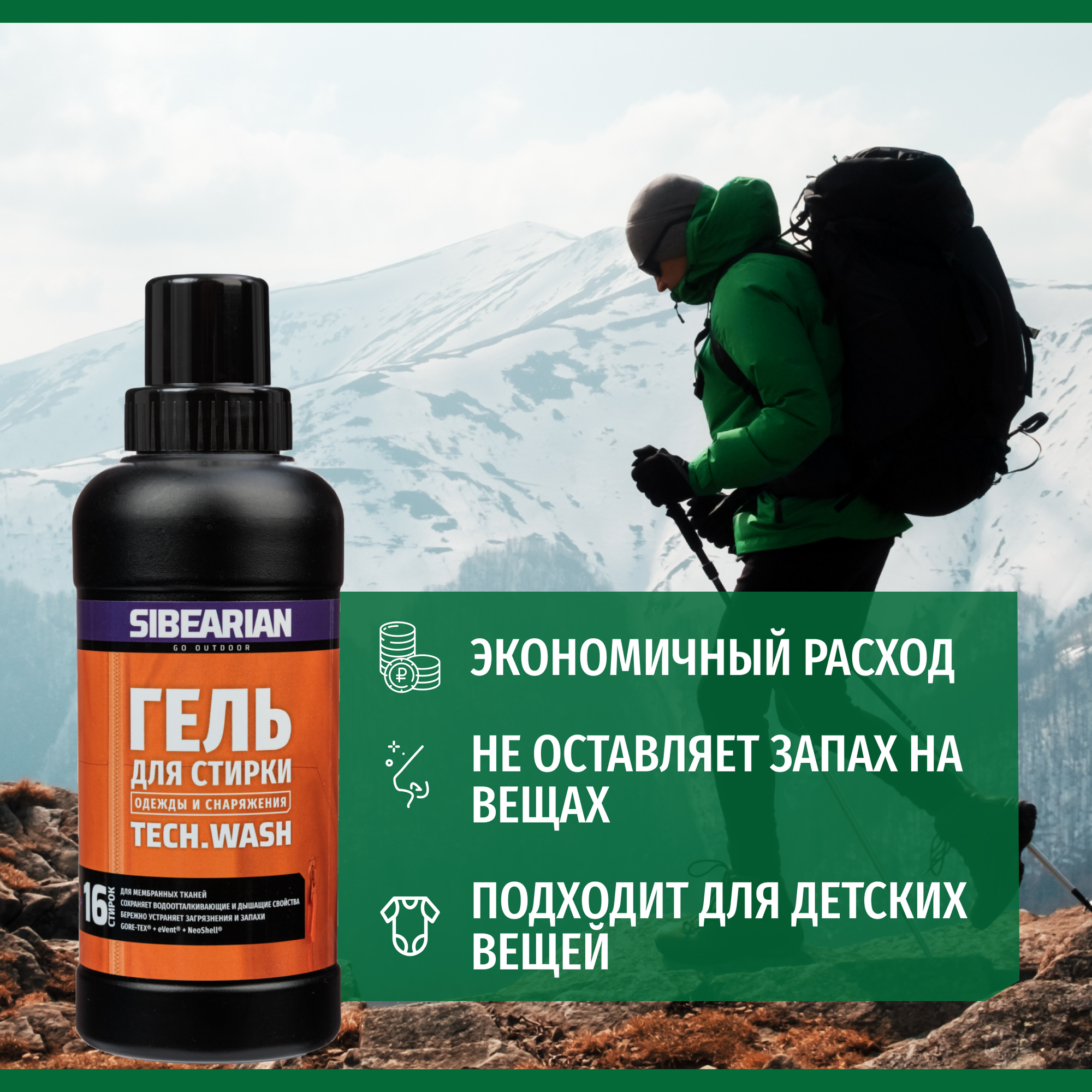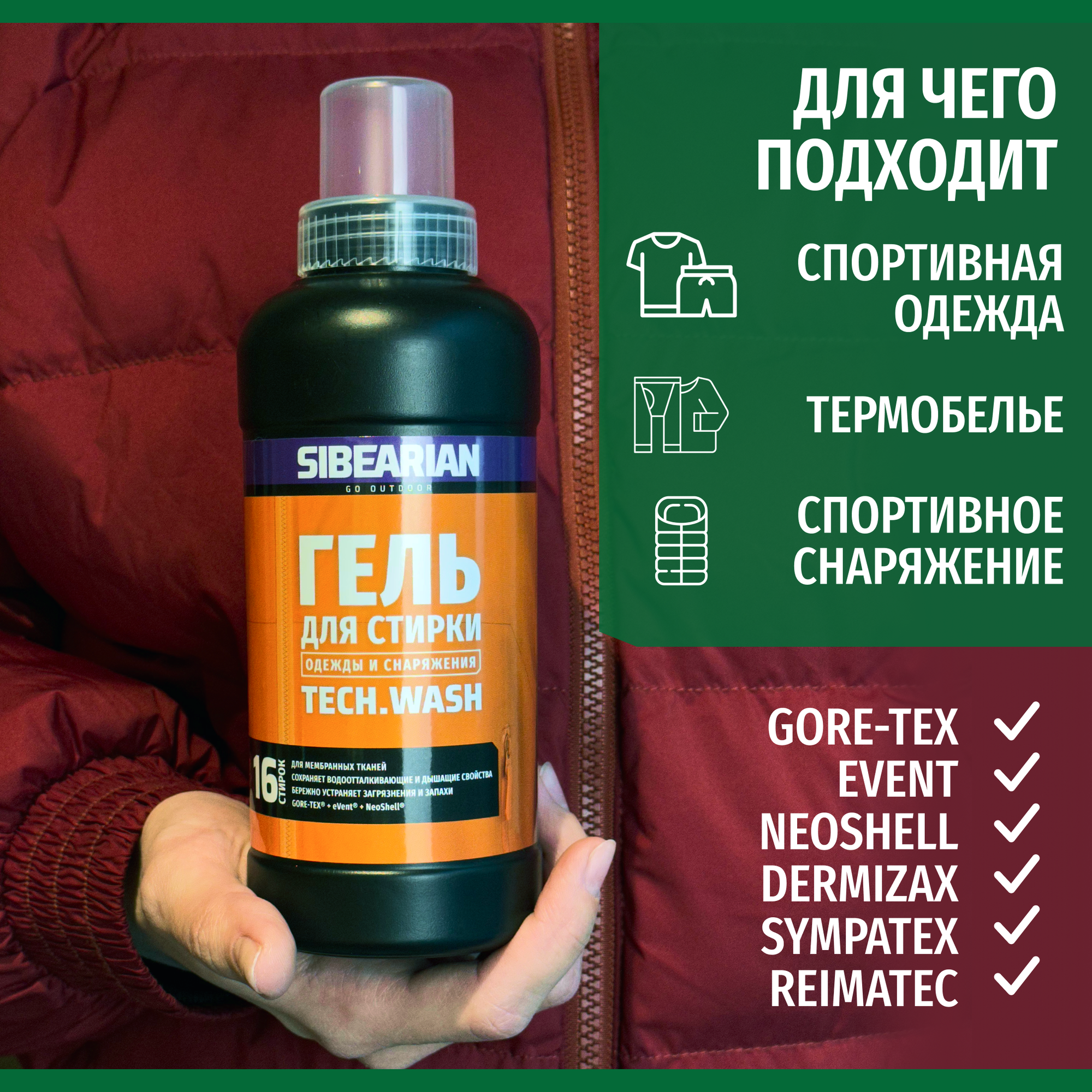 Гель для стирки спортивной одежды, мембраны с DWR, технологичных тканей SIBEARIAN SPORT WASH 500 мл