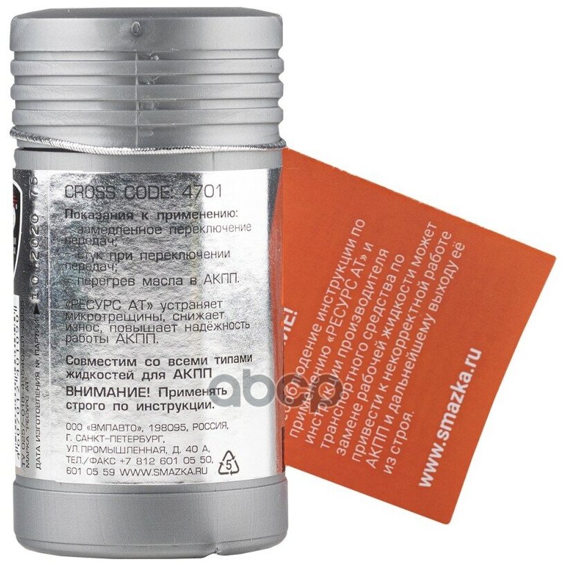 СохранитьРеметаллизант ВМПАВТО Resurs Total АТ д/авт.трансмиссии, 50г 4701 интересное: