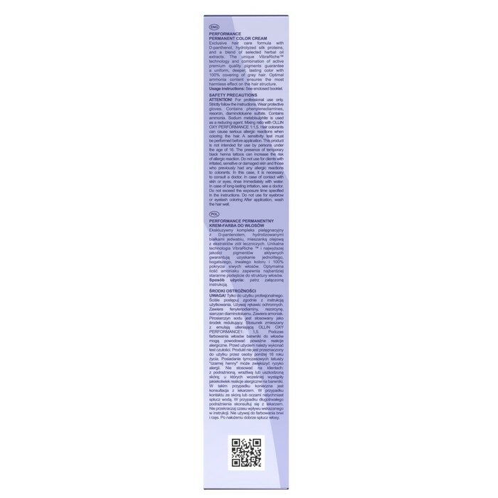 Ollin Performance крем-краска для волос 9/12 блондин пепельно-фиолетовый 60мл