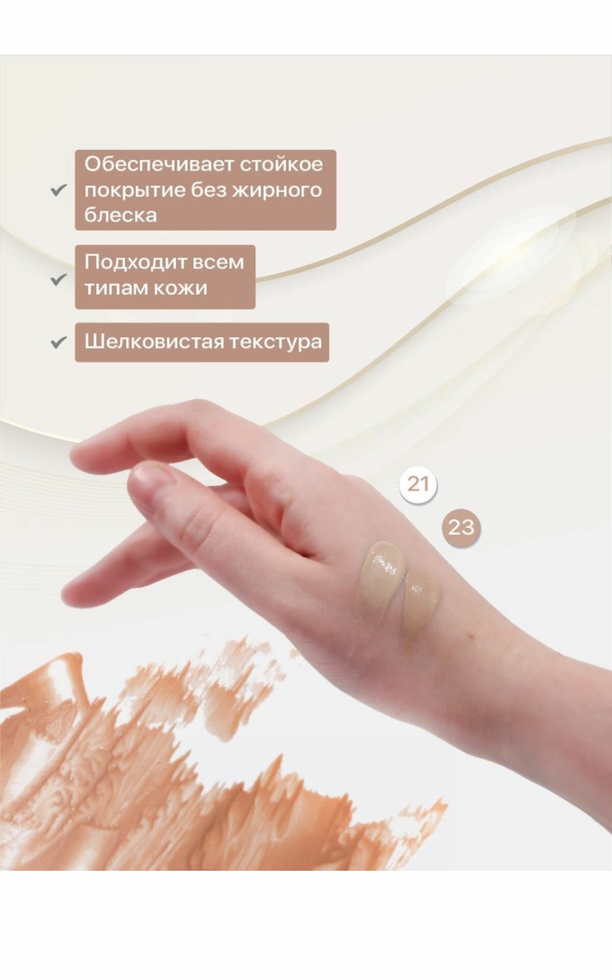 | Плюсы: | Кожа гладкая и сияющая,лежит в течение дня красиво и комфортно |