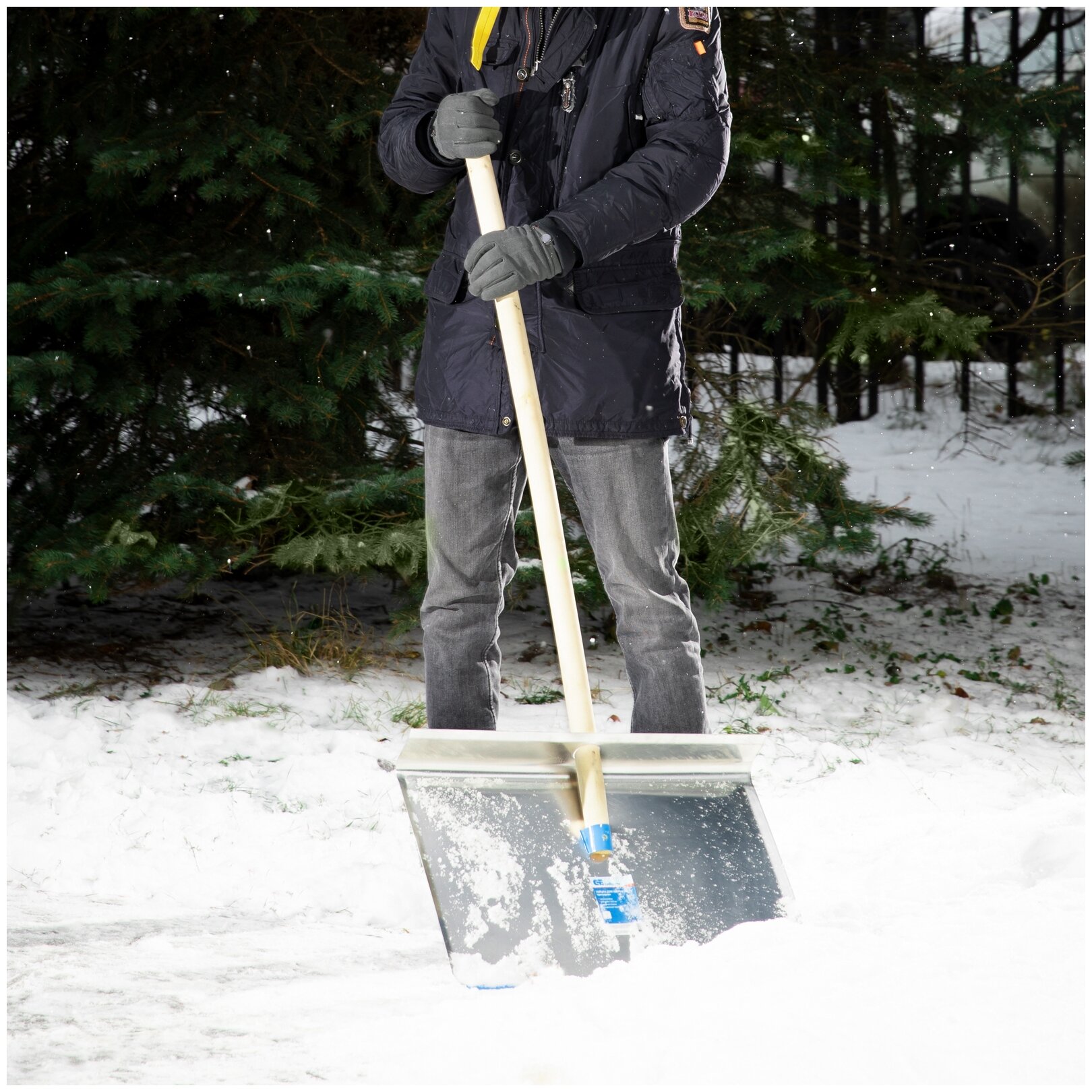 Лопата для уборки снега тротуарная, алюминиевая, 600 х 400 х 1420, деревянный черенок, Россия, Сибртех ( 61490 )