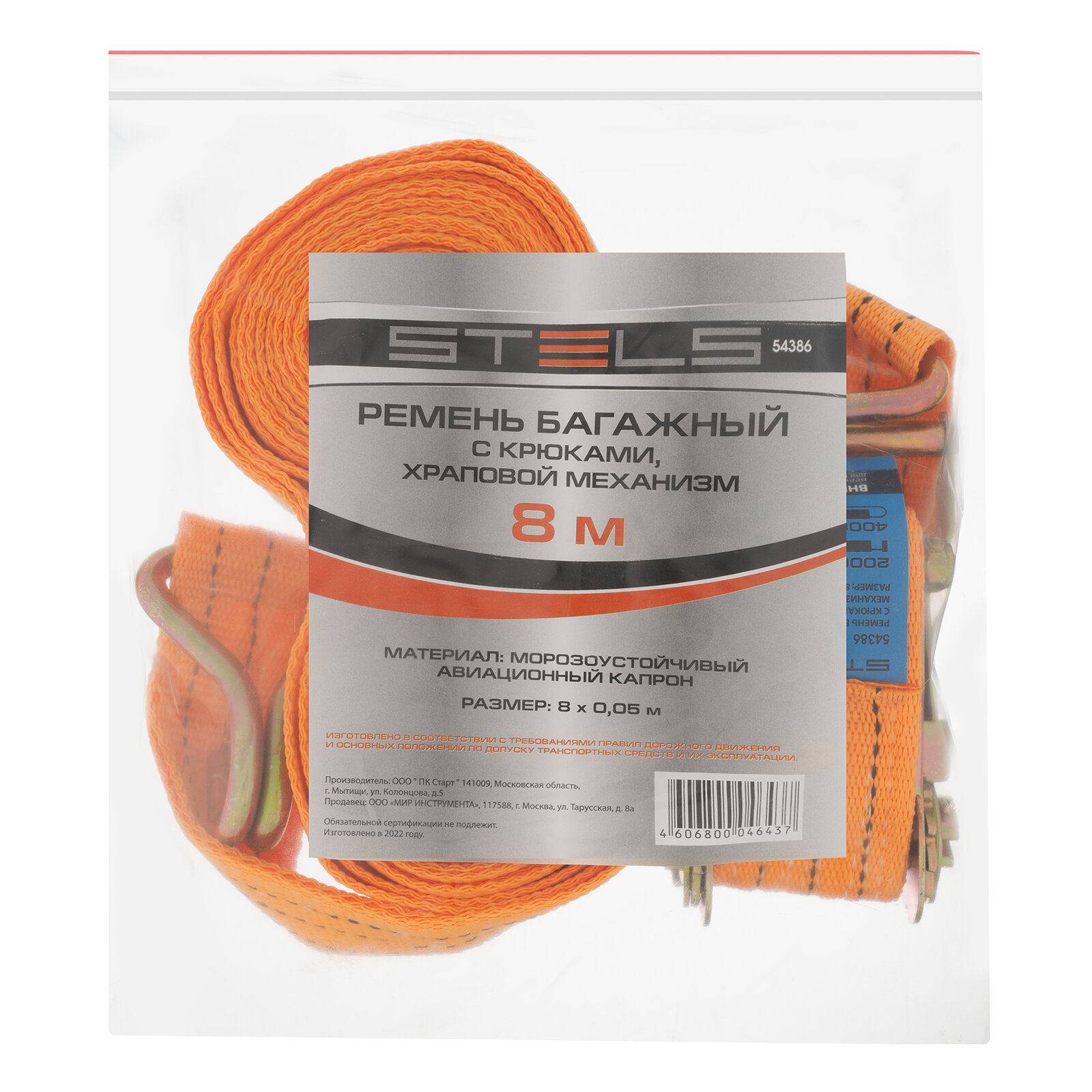 Ремень багажный с крюками, 0.05 х 8 м, храповой механизм Россия Stels ( 54386 )