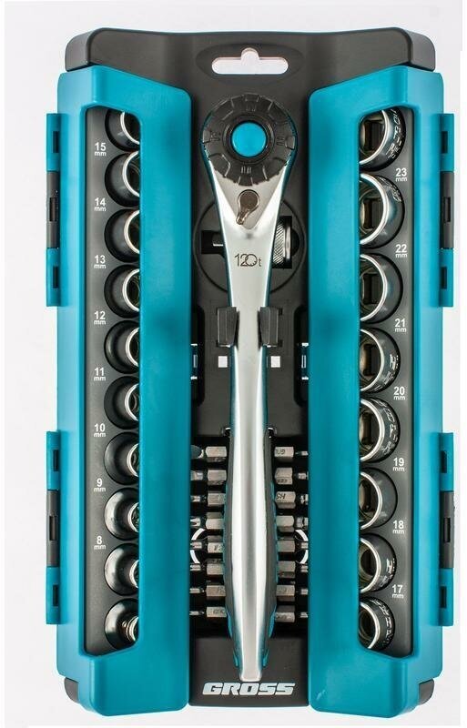 Набор торцевых головок, трещотка 120 зубьев, 36 предметов, 1/2, 3/8”, CrV Gross