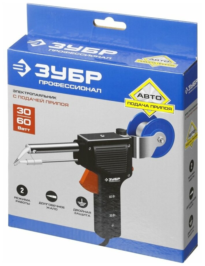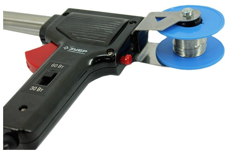 Паяльник ЗУБР "Профессионал" с подачей припоя, 2 мощности (30Вт/60Вт), диаметр проволоки припоя от 1 до 3мм