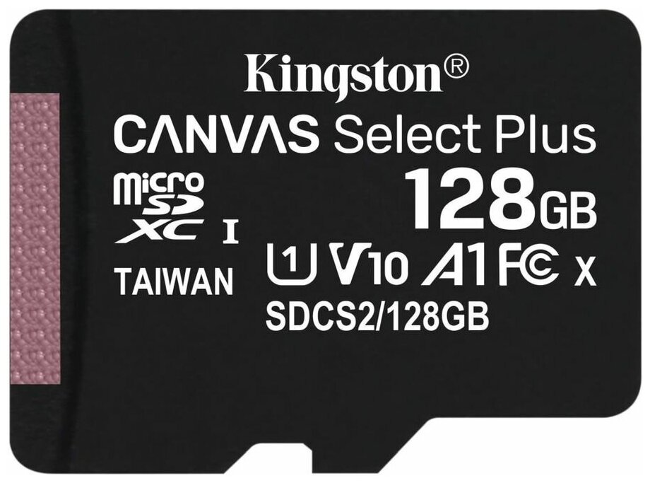 Карта памяти microSDXC Kingston Canvas Select Plus, 128 Гб, UHS-I Class 10 U1 A1 (SDCS2/128GBSP) RU