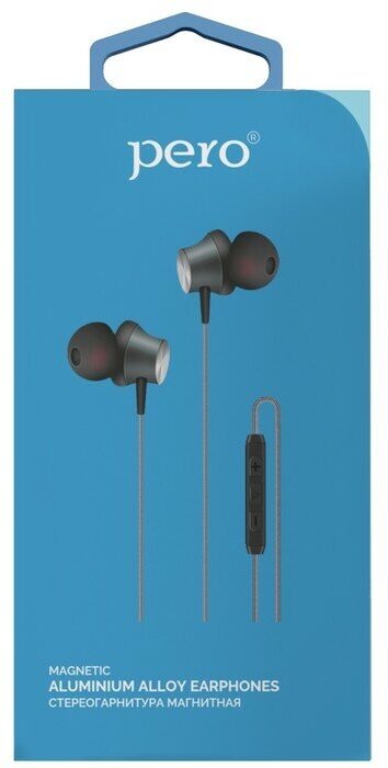 Наушники PERO EP01, вакуумные, микрофон, 118 дБ, 3.5 mm, 1.2 м, магнитное крепление, серые 9605970