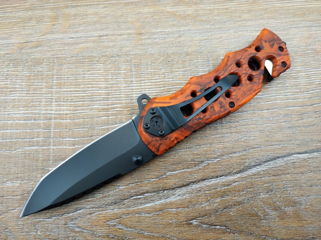 Нож складной Stinger , 86 мм (чёрный), рукоять: алюминий (оранжевый камуфляж)