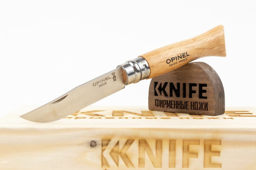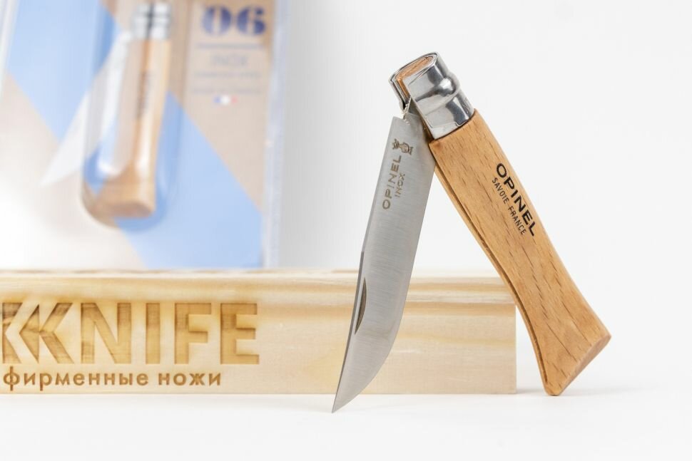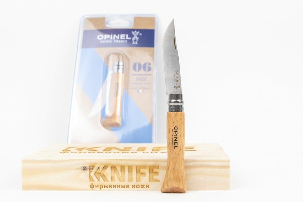 Нож Opinel №6, нержавеющая сталь, рукоять из бука, блистер, 000404