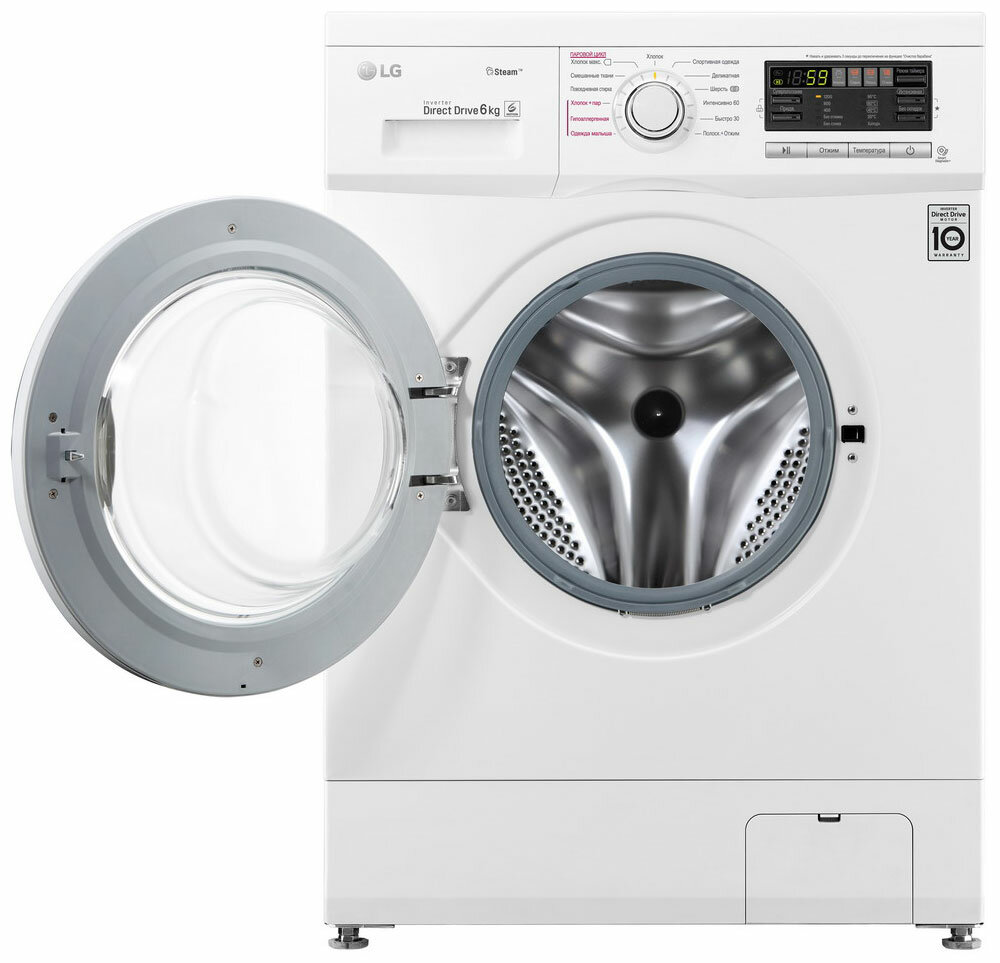 | Минусы: | Нет ThinQ, только Smart Diagnosis, многие режимы стирки очень долгие по 2,5 и 3,5 часа. |