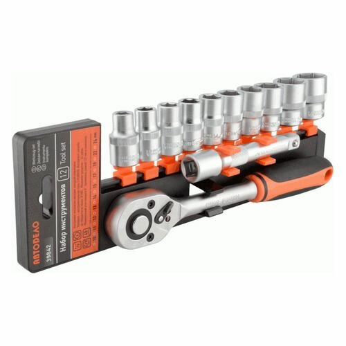 Набор торцевых головок Автодело с трещоткой, под размер 1/2", комплект 12 предметов, арт. 39842