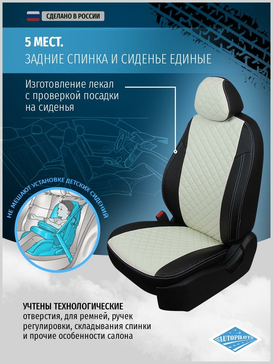 Чехлы для Peugeot Partner 2 2008-2018 Автопилот Белый Экокожа с ромбом pe-pr-t5m-chb-r