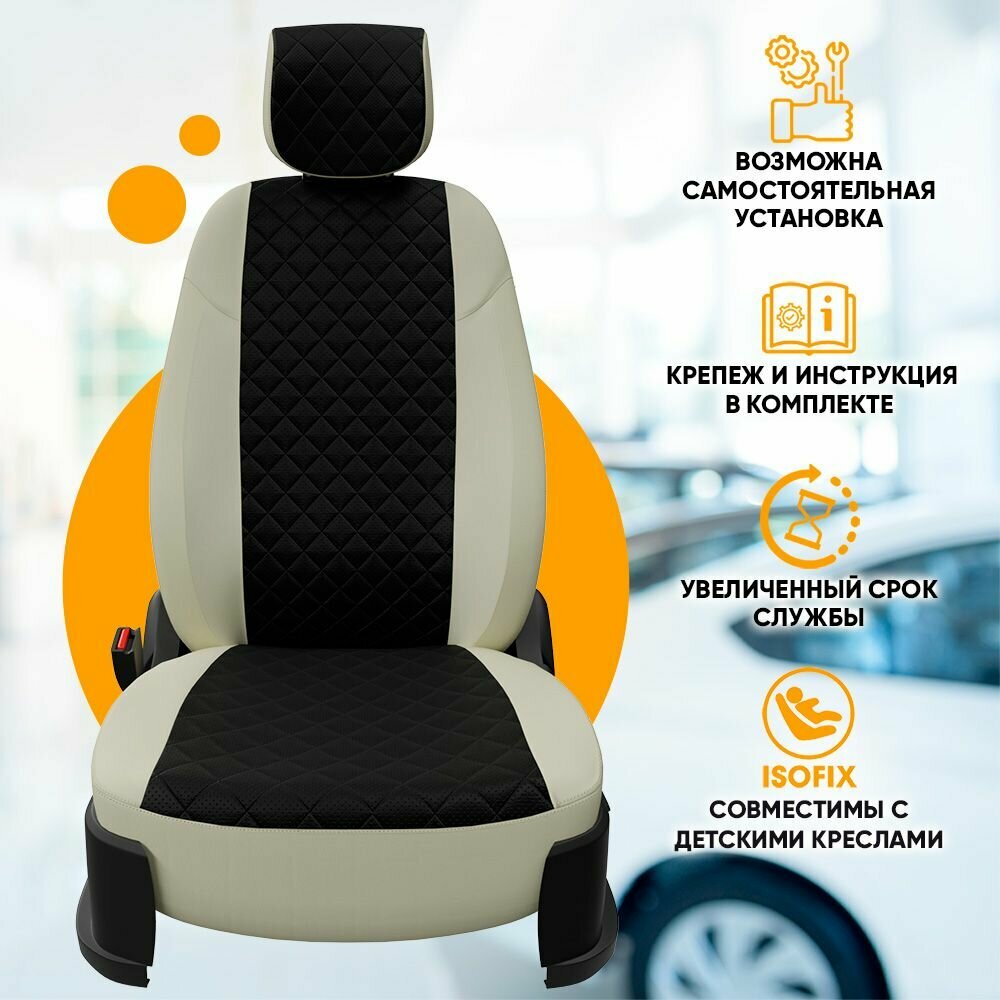 Комплект оригинальных чехлов на сиденья для LADA Vesta / Vesta SW Cross / Экокожа, Строчка: Ромб / Черный, Темно-бежевый / va-lv-vt-chetb-r