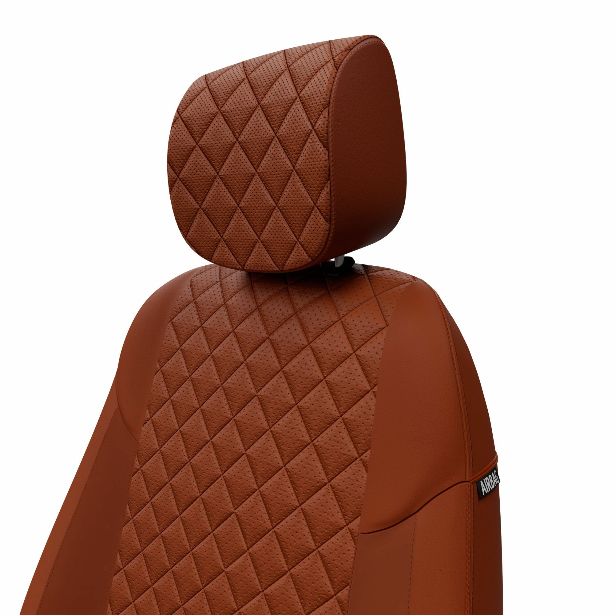 Авточехлы на LADA Vesta I (SW / Cross) "Ромб" экокожа, коричневый