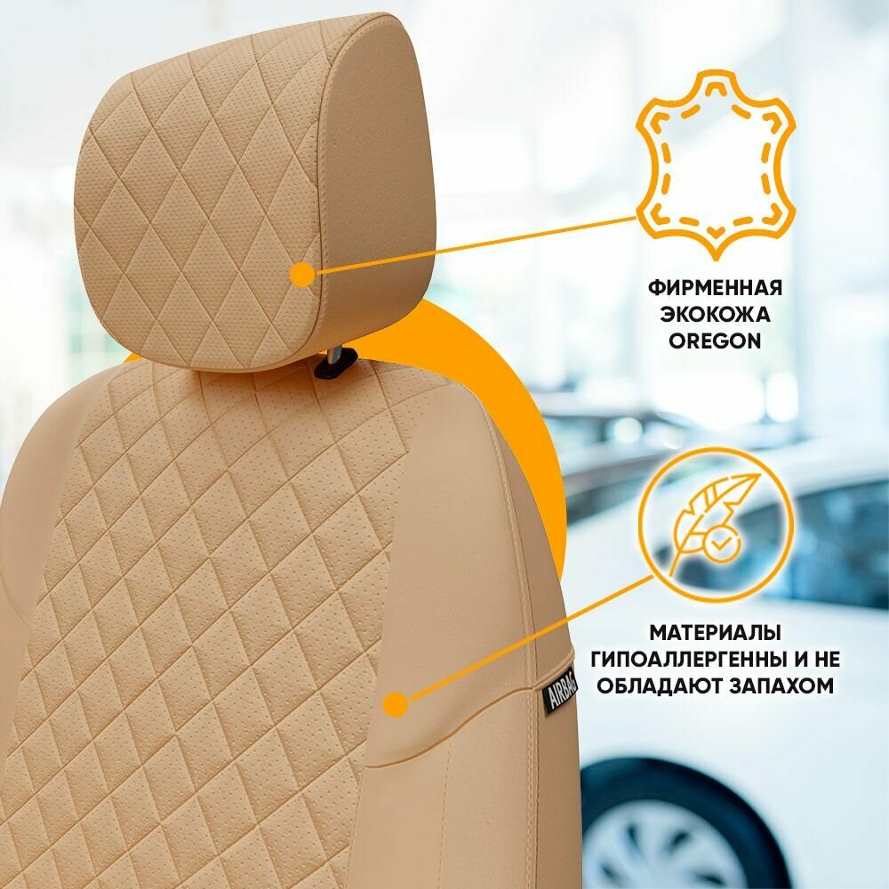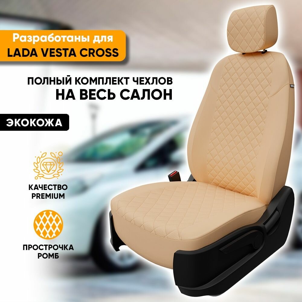 Комплект оригинальных чехлов на сиденья для LADA Vesta / Vesta SW Cross / Экокожа, Строчка: Ромб / Бежевый, Бежевый / va-lv-vt-bebe-r