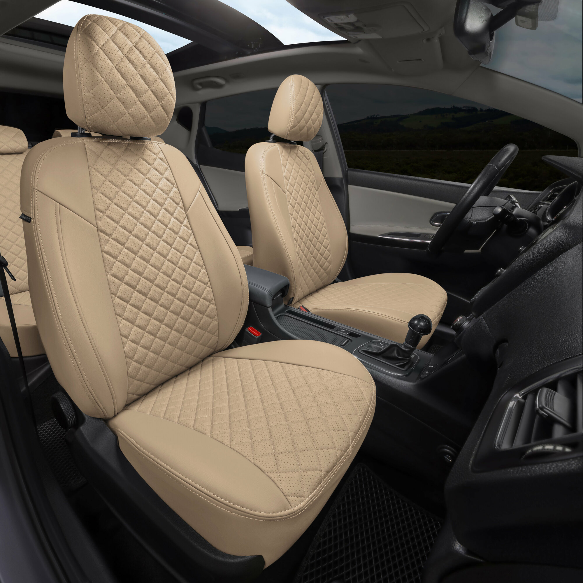 Комплект оригинальных чехлов на сиденья для LADA Vesta / Vesta SW Cross / Экокожа, Строчка: Ромб / Бежевый, Бежевый / va-lv-vt-bebe-r