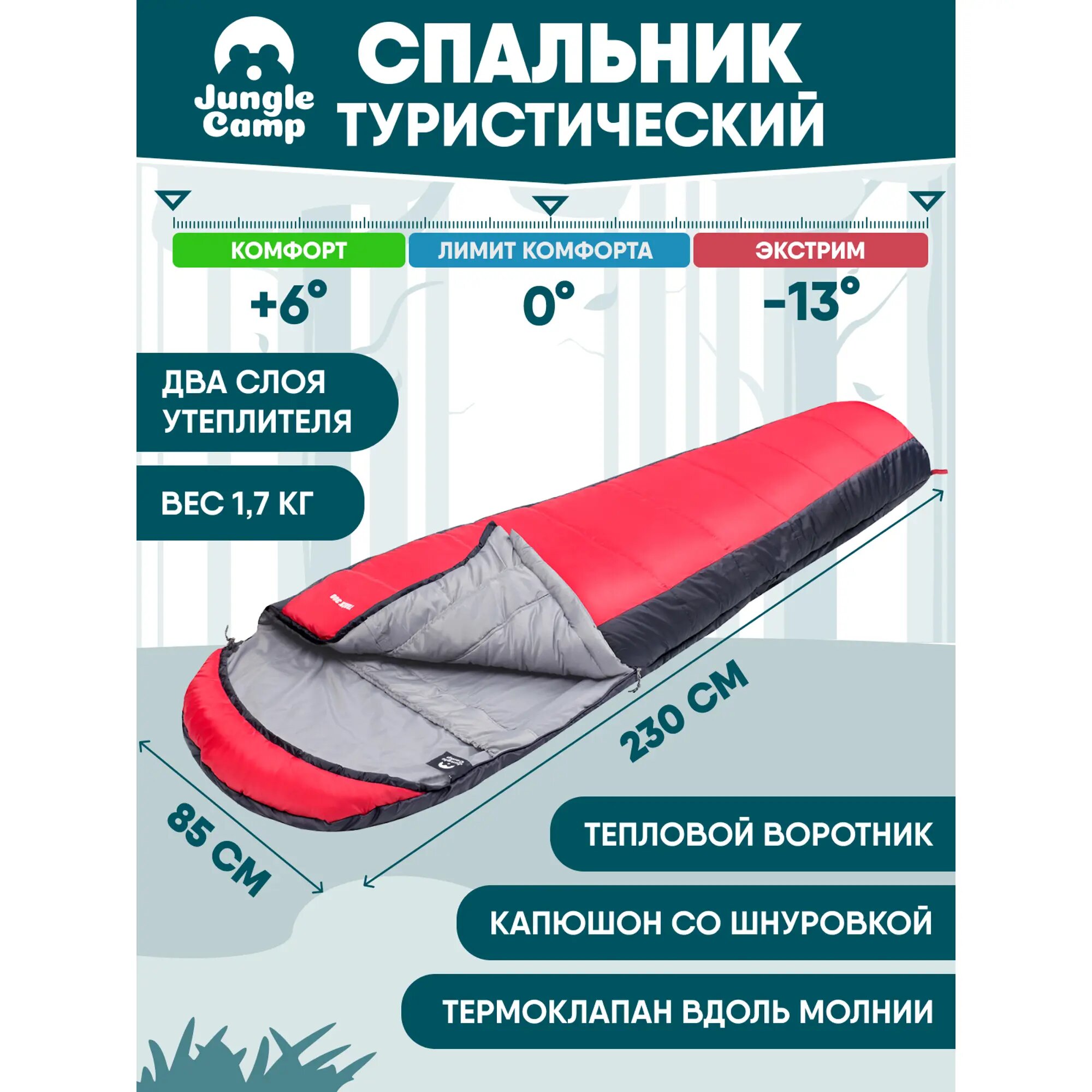 Спальный мешок Jungle Camp Track 300, трехсезонный, левая молния, цвет: серый, красный интересное: