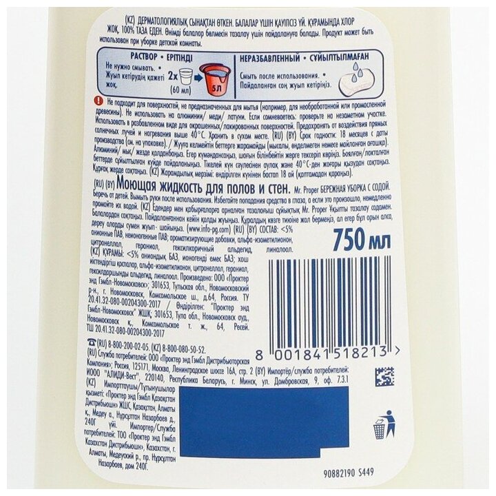 Моющая жидкость для полов и стен с содой, MR PROPER, 750 мл интересное: