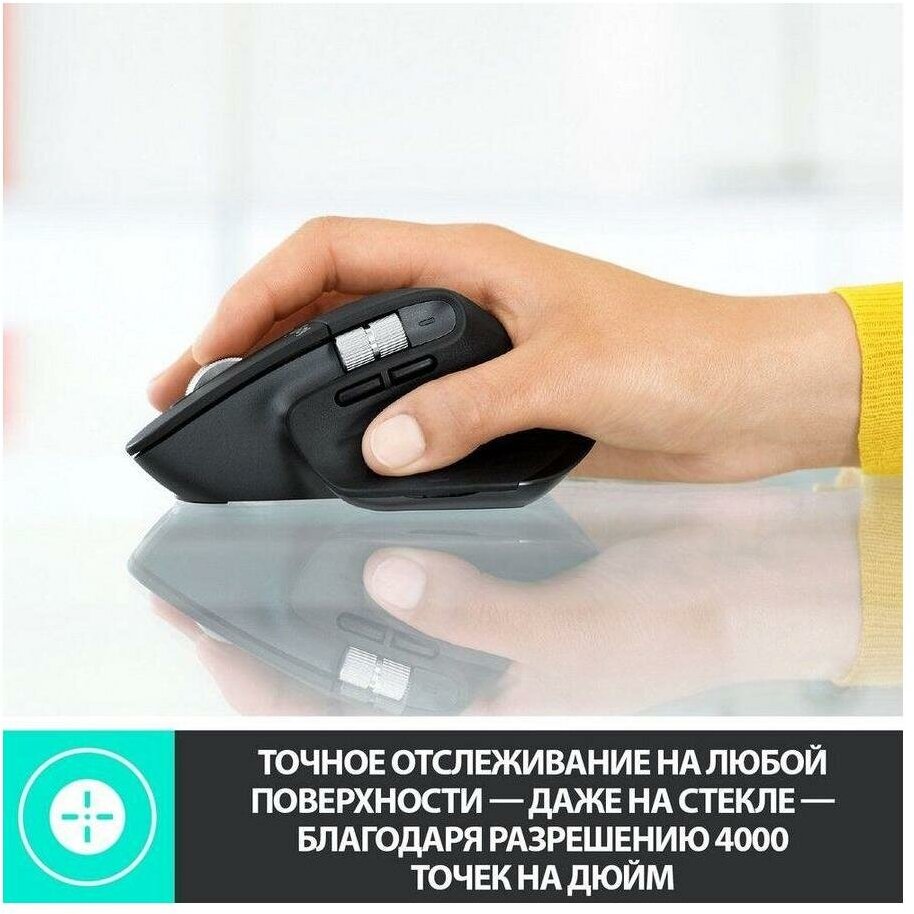Logitech Мышь беспроводная MX MASTER 3, оптическая, 4000 dpi, Bluetooth/Радио, Li-pol, графитовый.