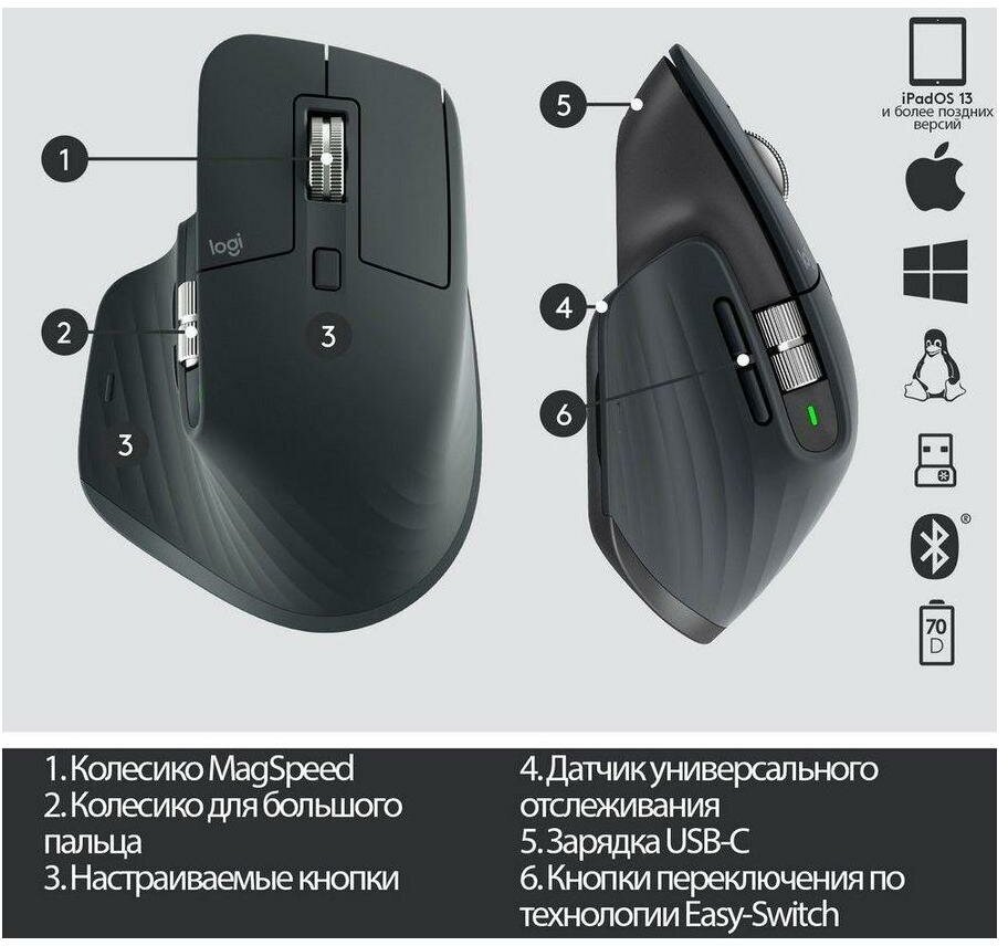 Беспроводная мышь Logitech MX Master 3, графит