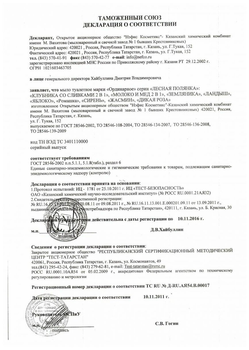 Мыло-крем туалетное твердое "Лесная Полянка" 90г, 9х5,5х2,5см, протеины шелка (Россия)