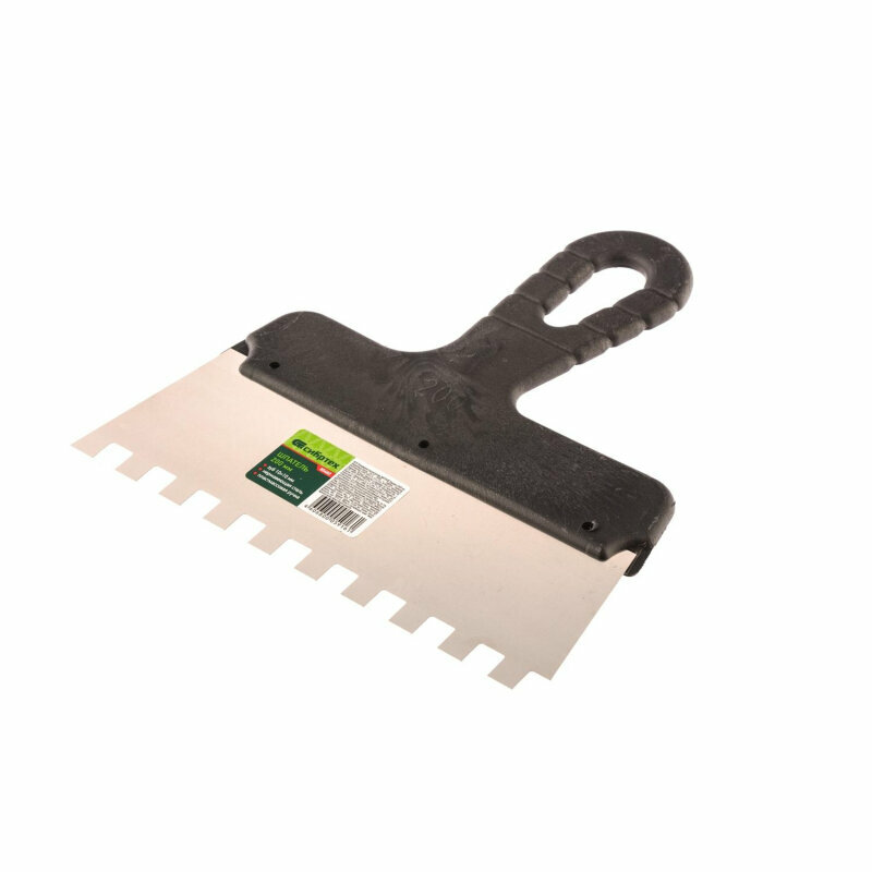 Шпатель из нержавеющей стали, 200 мм, зуб 10 х 10 мм, пластмассовая ручка Сибртех 85482