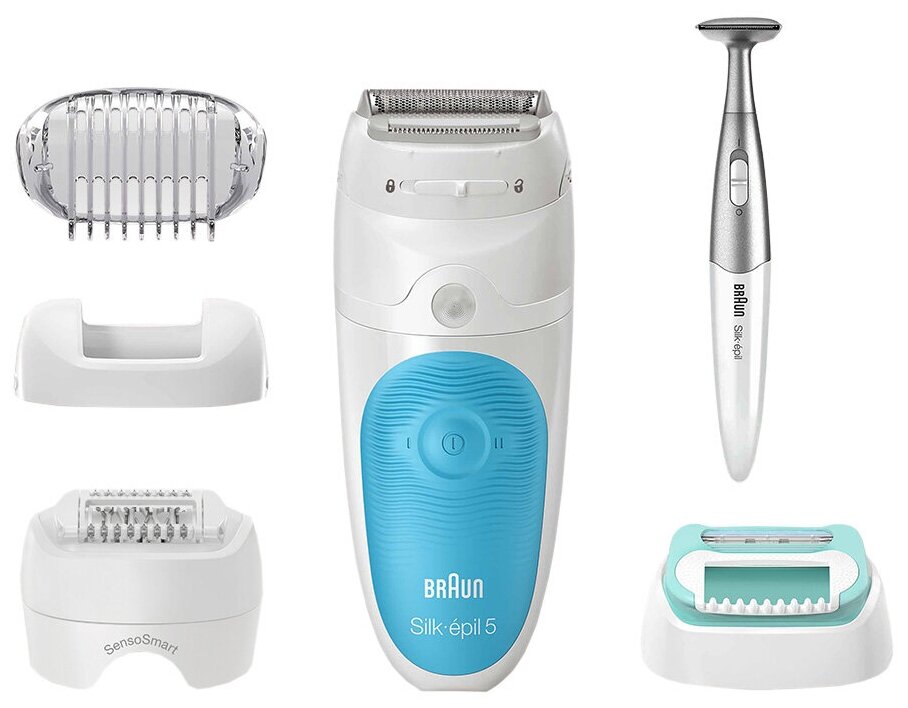 Эпилятор Braun Silk-epil 5 SensoSmart 5-810 + стайлер для линии бикини, white/blue