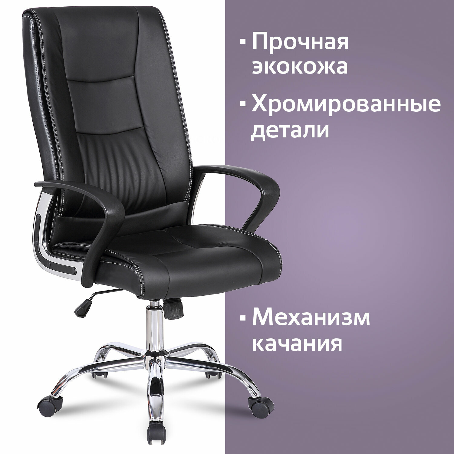 Кресло офисное BRABIX Forward EX-570, хром, экокожа, черное, 531837