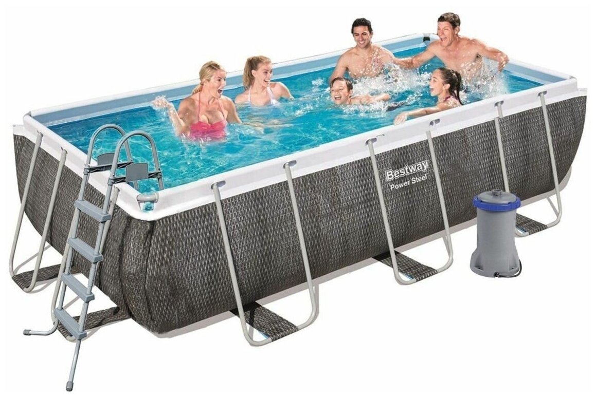 Бассейн каркасный Bestway, 488х244х122 см, Power Steel Rectangular, 56996BW, фильтр-насос, лестница, тент, 11532 л