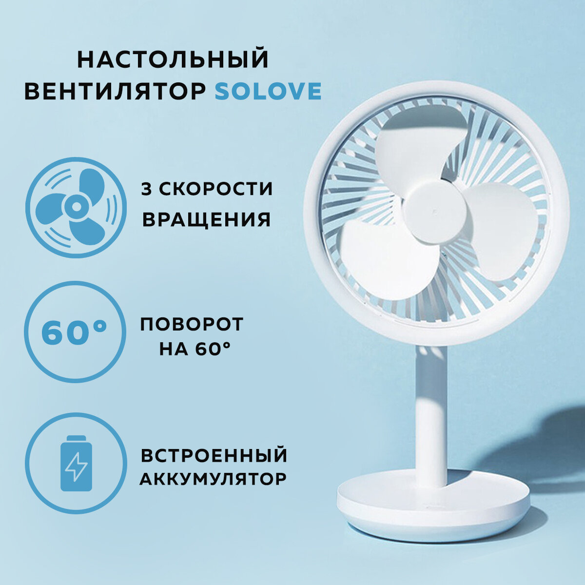 Портативный поворотный настольный вентилятор SOLOVE (F5 White), белый