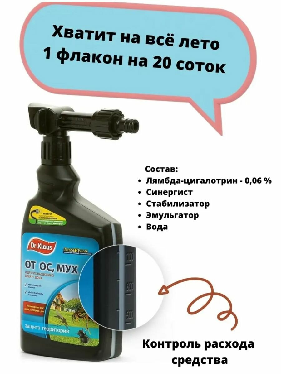 Средство от мух, ос и других летающих насекомых Dr. Klaus, концентрат, эжектор, 1 л