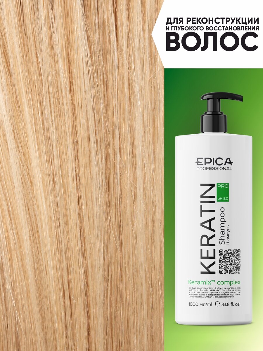 EPICA PROFESSIONAL Keratin Pro Шампунь для реконструкции и глубокого восстановления волос, с гидролизованным кератином и аминокислотами, 1000 мл