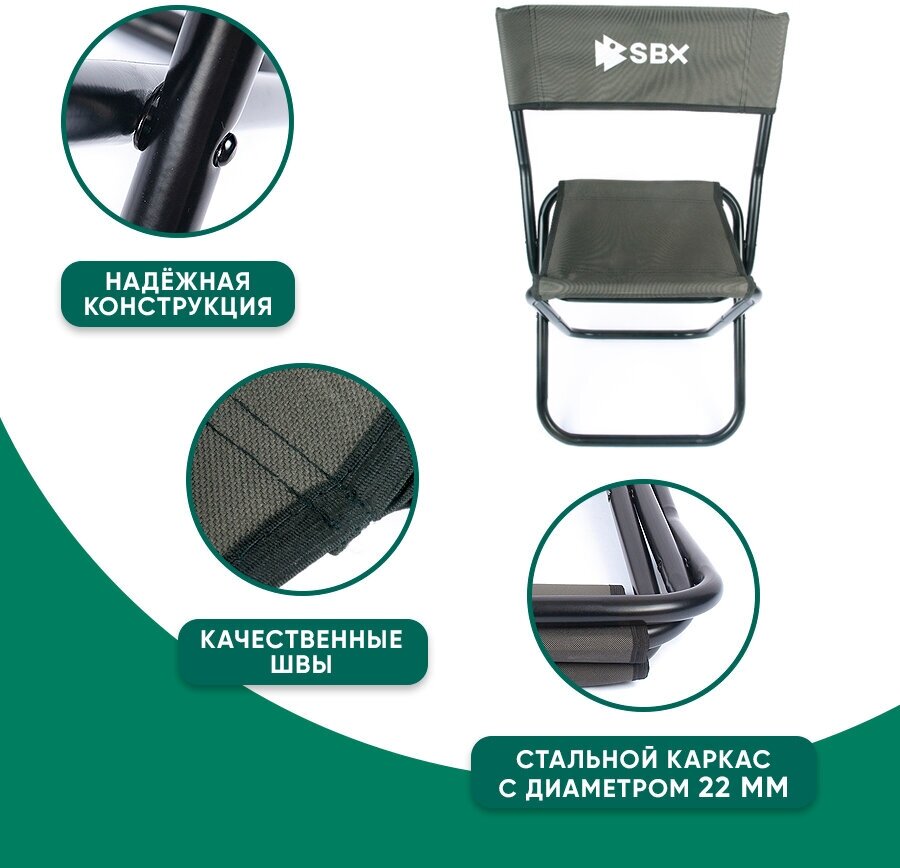 Стул складной туристический походный для сада / Легкий и компактный раскладной рыболовный табурет из стали со спинкой / Кресло для рыбалки SBX SSM-02