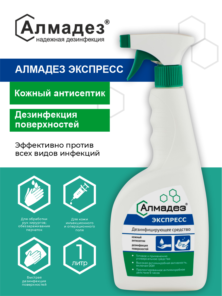 Антисептик кожный "Алмадез-Экспресс", дезинфекция поверхностей 1л. (с триггером) Алмадез 4887503