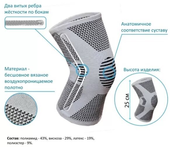 СохранитьБандаж на коленный сустав - "Крейт", №6, серый интересное: