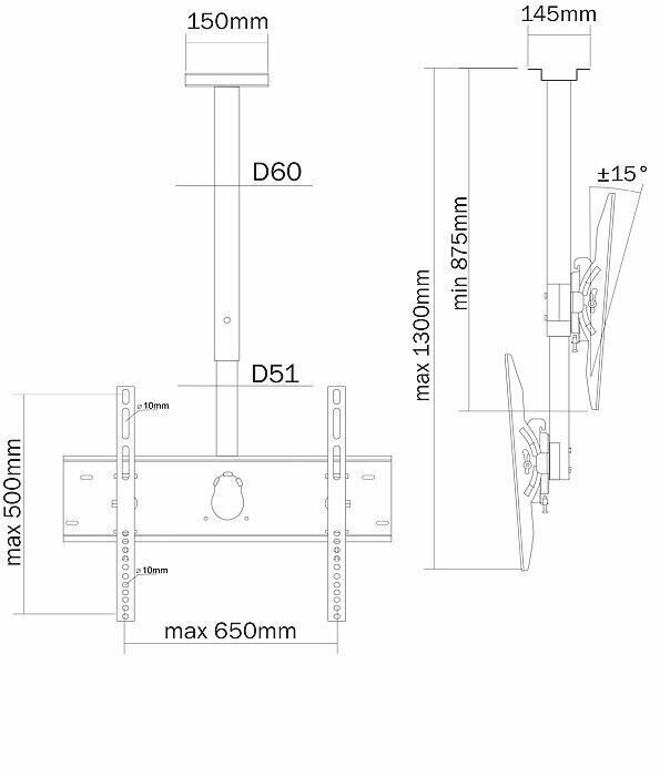 Купить Кронштейн на потолок ElectricLight КБ-01-35 для ТВ 32"-75" (81-190см) и весом до 80кг.. VESA 600*500. Черный.