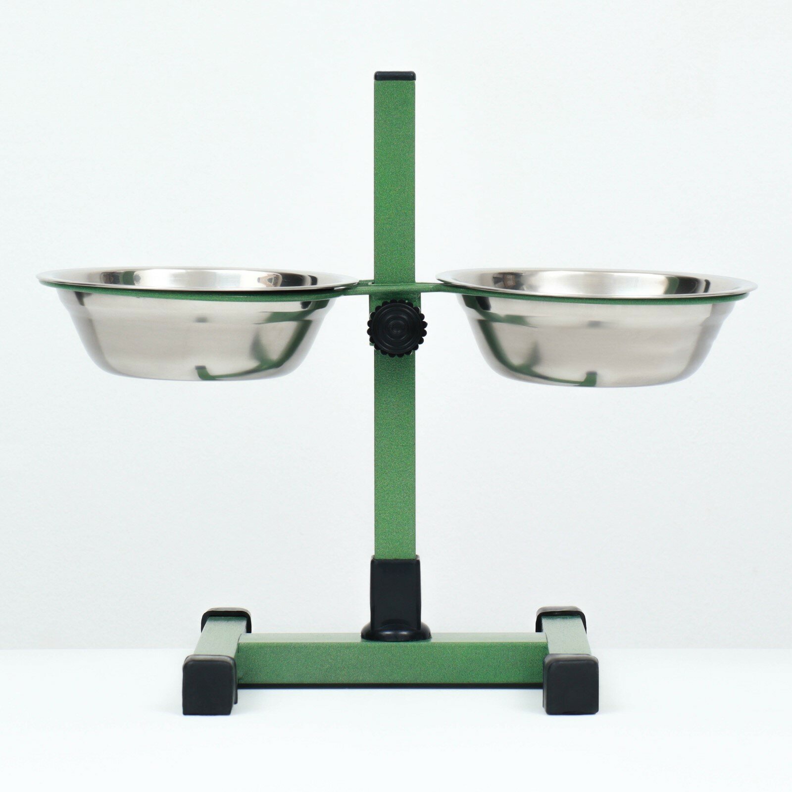 Подставка с мисками, 2 х 700 мл, высота 40 см, разборная, зелёная