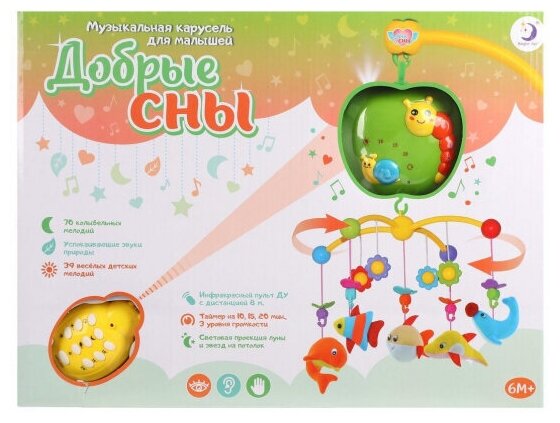 Мобиль музыкальный «Яблочко Пчелка Мая», на батарейках