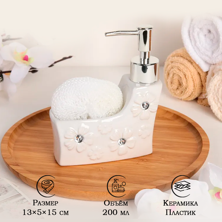 Дозатор для моющего средства с подставкой для губки Доляна «Нежность», 200 мл