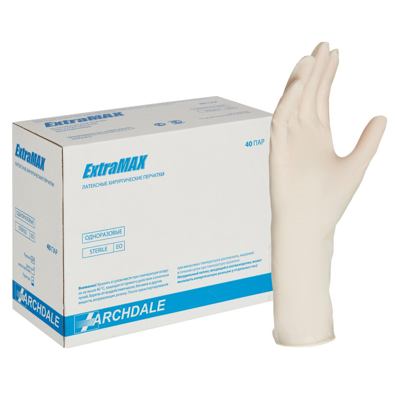 ARCHDALE Перчатки EXTRAMax стерильные, латексные, хирургические, неопудренные, размер 7 (40 пар)