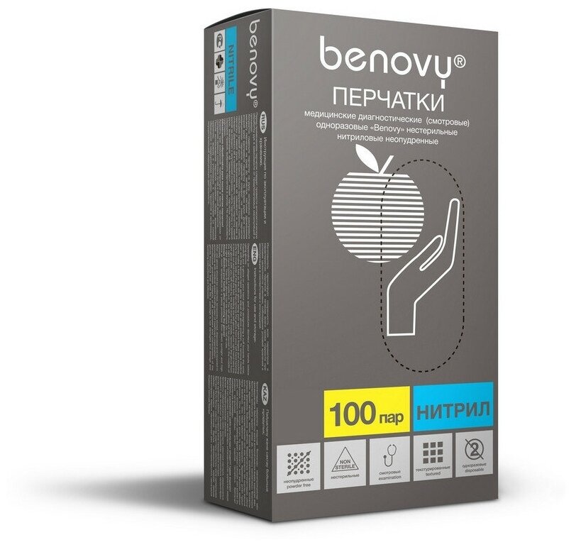 Ниже Вы можете прочитать отзывы на Перчатки медицинские Benovy, нитриловые, нестерильные неопудренные, текстурированные, голубые, размер XS, 100 пар, ознакомится с подробными характеристиками, посмотреть интересные обзоры и фотографии на Перчатки медицинские Benovy, нитриловые, нестерильные неопудренные, текстурированные, голубые, размер XS, 100 пар.