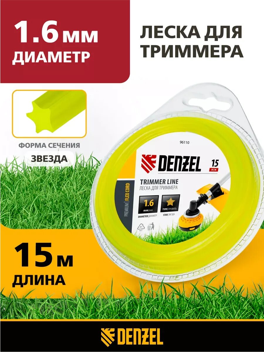 Леска для триммера Denzel звезда 1 6 мм х 15 м, блистер FLEX CORD 96110