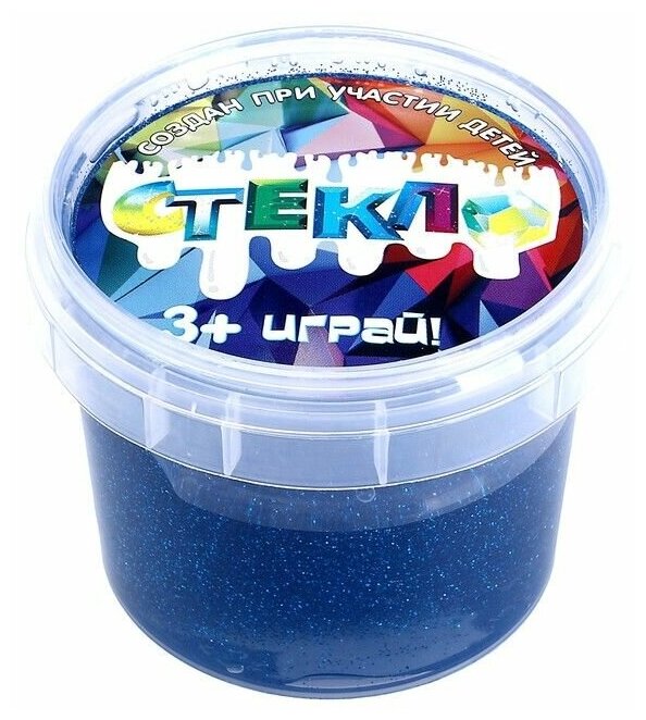 Слайм Стекло с ярко-синими блёстками 100 г, в банке